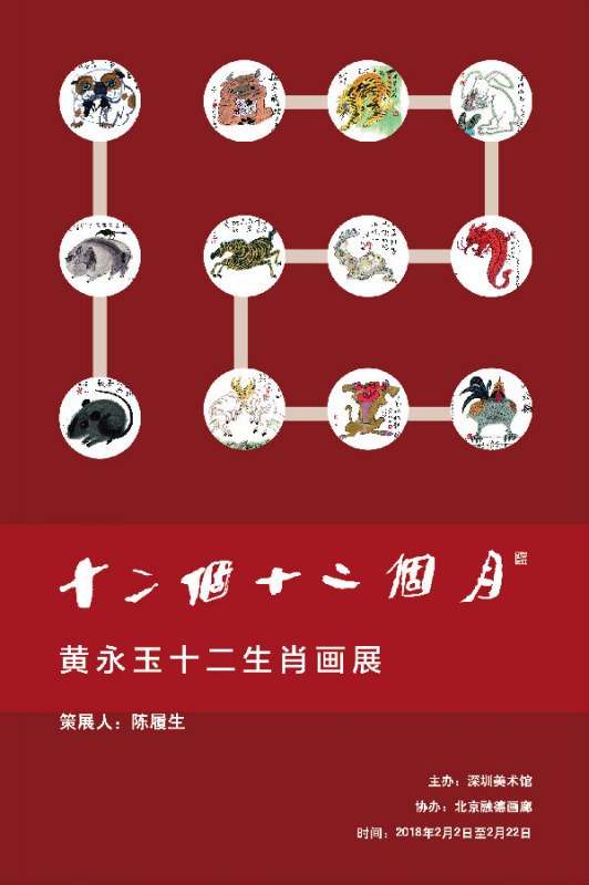从2006年(丙戌,狗)开始到2017年(丁酉,鸡)的12年间,黄永玉先生每年在新年到来之前都以生肖为题材画12张画,另外加上扉页和封面,自行刊印一本挂历,算是对新年的一种祝福,也是给各位朋友的一份新年礼物。新春伊始,深圳美术馆此次“黄永玉生肖画展” 汇集了他12年有关生肖题材创作的精品佳作,这些作品有的令人捧腹,有的令人沉思,黄氏风格尽在其中。